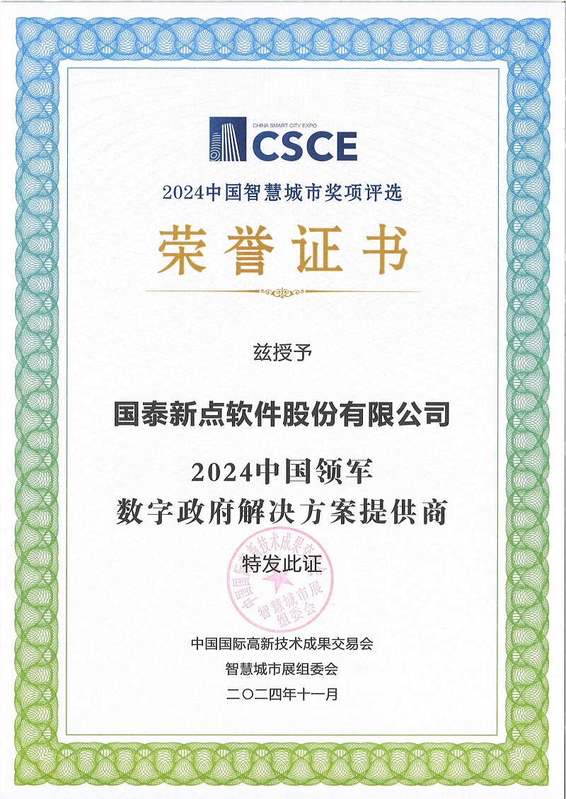 2024年度中國領軍數(shù)字政府解決方案提供商