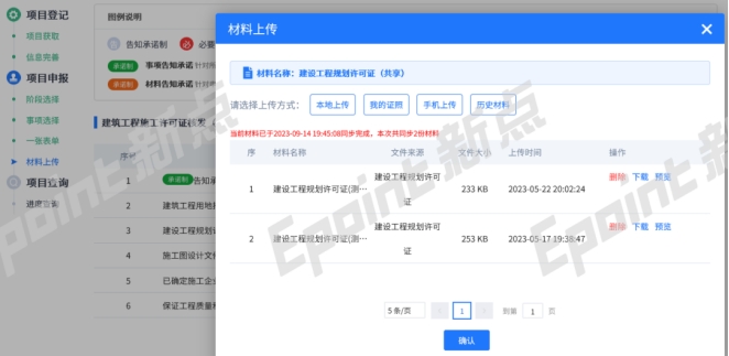 基于系統(tǒng)互聯(lián)、證照共享,企業(yè)在申報施工許可事項時,用地批準(zhǔn)手續(xù)、中標(biāo)通知書、規(guī)劃許可證、圖審合格書等提報材料直接通過系統(tǒng)共享獲取,實現(xiàn)“零證明材料”,辦理過程更加便捷。