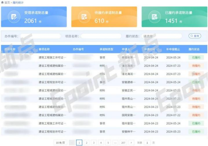 在告知承諾制監(jiān)管領(lǐng)域,推行告知承諾制+清單制服務(wù),打造“事前核查、事中審批、事后監(jiān)管”的閉環(huán)管理體系。目前,系統(tǒng)中已有830個項目申報了2061個告知承諾制辦件,其中已履約1451件,告知承諾制的推廣成效正在逐步提升。