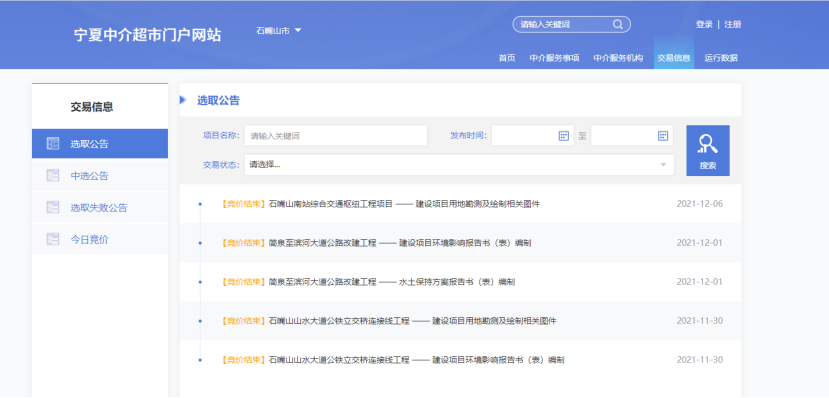石嘴山市通過建設統(tǒng)一網(wǎng)上入口、統(tǒng)一身份認證、事項集中發(fā)布、服務集中提供的“中介超市”,制定行業(yè)規(guī)范制定服務指南,為項目單位和中介服務機構(gòu)提供選取和承接中介服務的網(wǎng)上平臺,打造競爭有序、誠實守信、管理規(guī)范的中介服務環(huán)境。