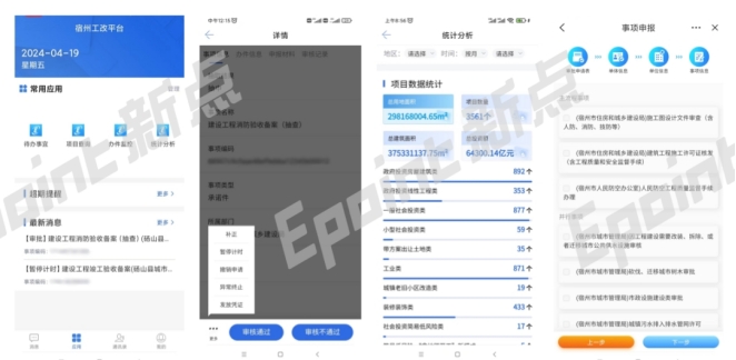 為提升企業(yè)辦事便捷性,宿州市住建局打造工改APP,為企業(yè)進行重要信息的查詢、簡易事項的申報提供便捷的渠道,實現(xiàn)工程建設(shè)項目“掌上辦”“指尖辦”。另一方面,也可為主管部門提供業(yè)務(wù)的批復(fù)流轉(zhuǎn)、超期提醒、統(tǒng)計分析,實現(xiàn)業(yè)務(wù)辦理“指尖審”。
